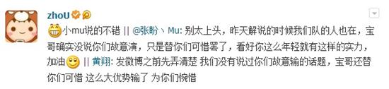 微博发表后不久,LongDD就发表了自己的看法,表示解说只是对他们表示惋惜,并没有用到“故意演”的话语,请弄清事实再发言。