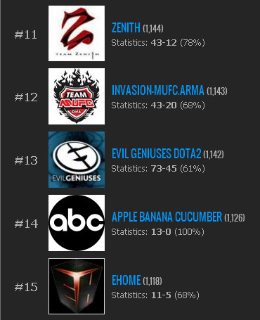 受上周刚结束的G1冠军联赛影响,当前排第一的ALLIANCE战队,紧接其后的是LGD战队。两支战队在G1上分别是冠军和亚军。IG排第四,第五位的是 TEAM LIQUID。