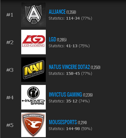 以下战队排名统计自国外网站GOSU,该排名是根据相关赛事进行变动的,简单来说就是,在各种赛事中,赢了加分,输了扣分。根据两只队伍的实力差距和赛事的重要程度,所加减的分数也是不一样的。以下是当前战队的世界排名,这个排名表也是根据赛程变化而更新的。
