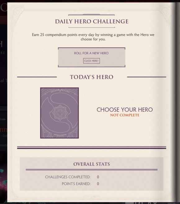 首先是小紫本目标14 日常英雄挑战已经出现在小紫本 点击 ROLL FOR A NEW HERO 就会出来一个英雄 获胜可以获得25点积分
