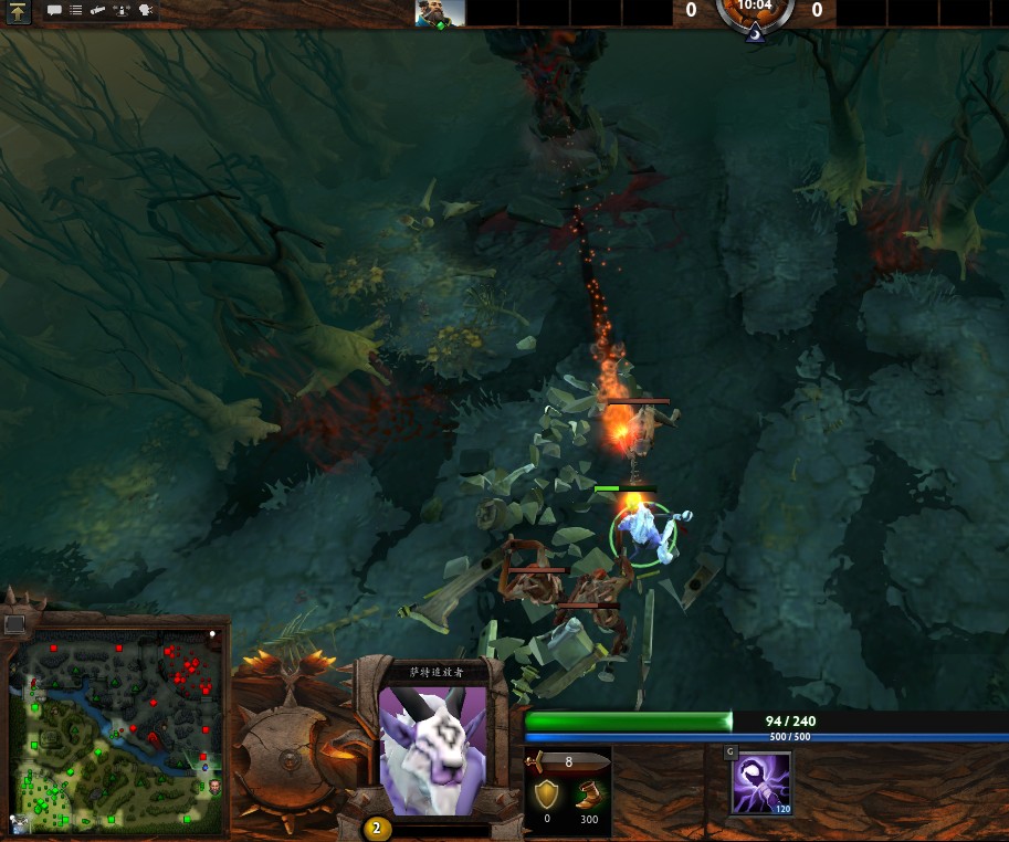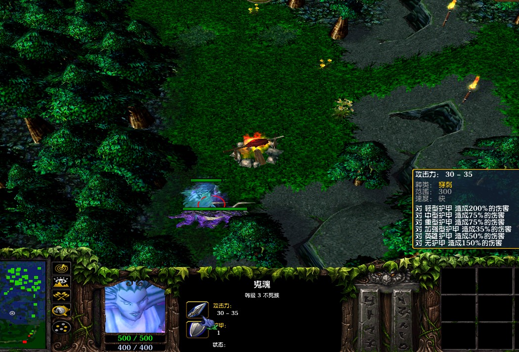 冰魂的射程比小兵略近一些,大概在400左右,不过攻击力竟然高达47点,和上面war3里的攻击对比,有显著提升!这不知道算是bug还是修改呢?