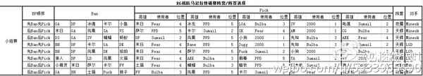 EG战队共进行了八场比赛,四场先BAN先选、四场后BAN后选,BAN掉GA5次,DP4次,卡尔3次,凤凰3次,末日2次,小狗2次,蝙蝠、土猫、精灵、萨尔这些日常BAN英雄各1次,其余均是针对敌方阵容和选手的BAN人(BM和DS均由对手前两手日常BAN掉)。