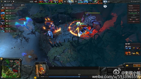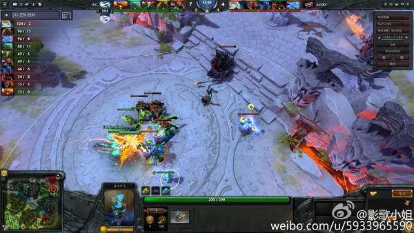另外,EG战队在小组赛中所表现出来的对肉山盾的强烈控制欲明显超越许多队伍。例如对阵Mineski的第一局比赛中,十二分钟左右在对方毫无意识的情况下偷掉肉山盾,将自己前期的小小劣势直接扳成了优势。而队伍中的三号位哪怕在己方劣势的情况下,也会时时侦查肉山,五号位更是在比赛到达中期后,经常关注肉山、在肉山处给眼,因此对于比赛中对手在什么时候会打肉山、己方什么时候可以拿掉肉山盾都了如指掌。对于EG战队的对手来说,除非场面碾压或者有巨优势,又或者自信肉山团能够接得起,否则最好不要指望偷掉肉山盲目打盾,这只会让自己辛辛苦苦建立的优势被磨得灰飞烟灭。