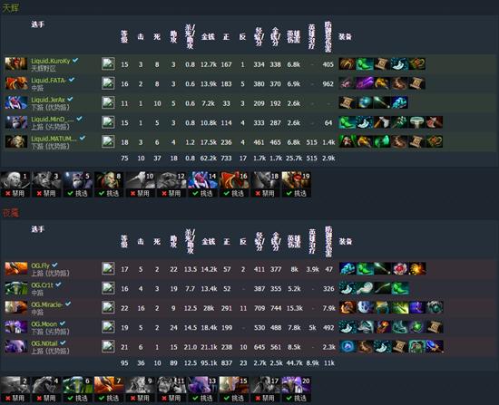 这一场比赛OG出奇招给大爹拿到了一号位的虚空,M神拿到了二号位的剑圣!而液体选择了狼人作为自己的大哥,并且选择了肉核龙骑作为自己的二号位。