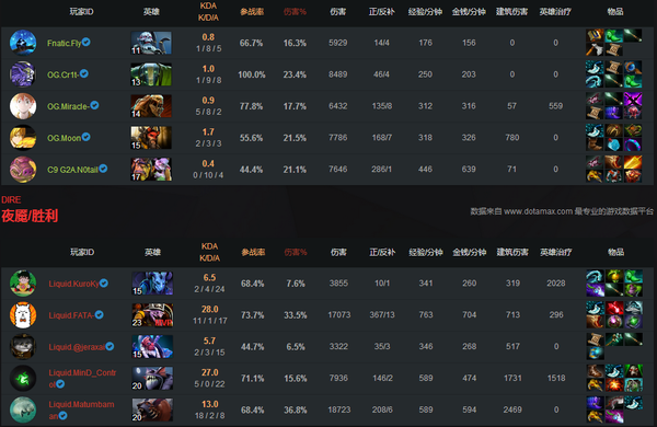 40分钟斯文跳刀先手秒掉VS,虚空大两个,OG转头秒掉液体双核!两个大哥立刻买活,但是没有大招,液体只能打出GG,OG拿到赛点!