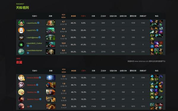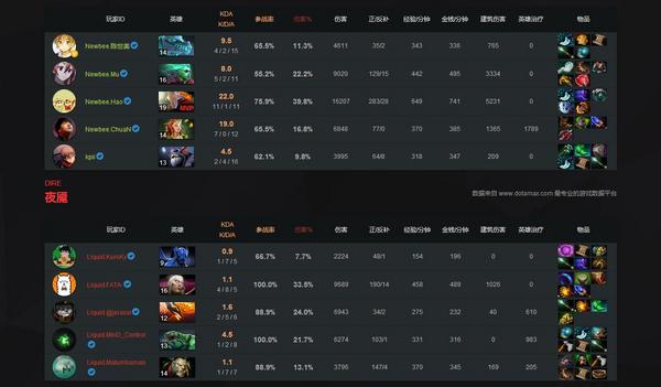 28分钟 NB下路直接高地 大鱼人一脚跳踩卡尔 剑圣跳刀上去几刀砍死 不过卡尔立刻买活击杀了大鱼人 NB接着拆,潮汐大招配合凤凰大招 DP被打到了空血 但是MU吹风吹起了自己 强行吸了回来反杀了两人 NB直接拆掉了下路 又拆掉了中路 然后拆上路~MU神的DP空血吹自己太关键了没死 反而杀了两个,NB拆最后一路 液体疯狂冲过来守,一个个买活 一个个死,液体打出了GG。
