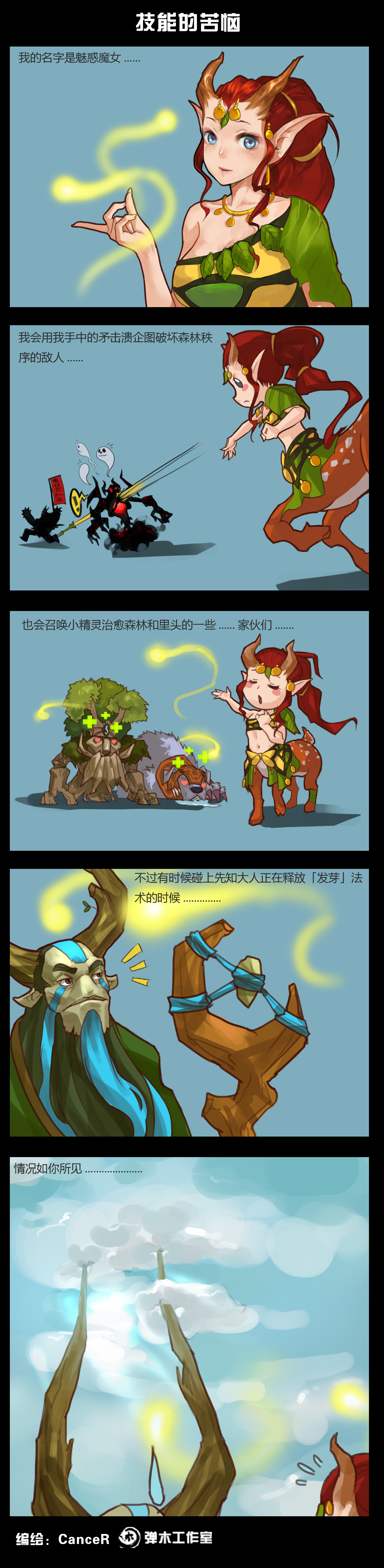 DOTA2肉山黑名单本周继续为广大玩家带来魅惑魔女——小鹿主题的相关福利,今天的内容是充满内涵的六张四格漫画。小鹿要选男朋友,可为何偏偏挑中了猛犸呢?自然之助技能遇上先知的发芽技能又会发生神马?传说某个地方有一座巨大的山,是一位强大的英雄所化,这是为什么呢?苦逼的矿工米波做梦都想有一头坐骑,可是醒来却发现…有趣而精彩的四格漫画,让我们一起来欣赏吧!