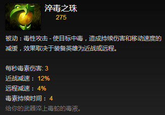 相比于BH的暗影步,由于SA的隐身是被动技能,所以不存在Gank成本这个说法,路过砍一刀,有事没事砍一刀,看你不爽砍一刀,再配合毒球这件道具,会让对面的英雄很是心烦。