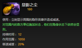 简单来说,显隐之尘是一件进攻道具,是先手追杀时使用的,并且当你撒出粉的时候,一定要抱着杀人的决心,不杀人这波就是亏的。