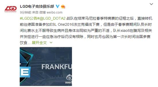 昨天LGD战队发布紧急声明,表示由于队员的身体原因无法参加ESL法兰克福的比赛,不得已只能选择弃权!