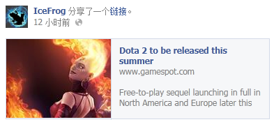 冰蛙facebook暗示DOTA2将在夏季正式发布