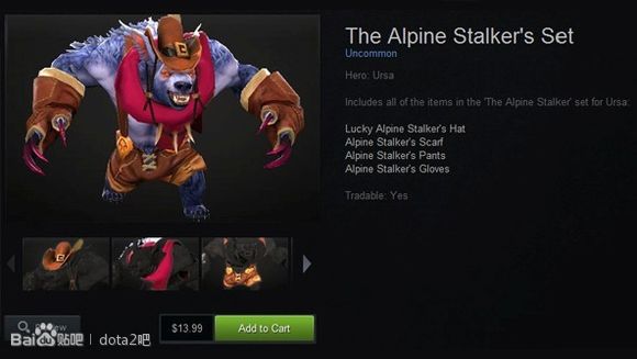 但是再疯狂,也比不上下面这套饰品,它的价格,在也是在一夜之间水涨船高,在刚刚绝版的那个星期,平均一天涨10key!不说后无来者!起码前无古人了!这个疯狂的套装就是!熊战士高山行者套装(Lucky Alpine)!俗称牛仔套!