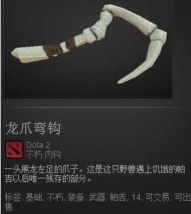 龙钩和战吊一样一开始都出自九号夏日箱子,但是它的历史和故事,可比战吊还要曲折的多。龙钩一开始是神话级别的饰品,来自九号夏日箱子。原本市价非常稳定——2key。不多一点也不少一点。夏日箱子过期活动结束了以后它也加入了掉落列表开始掉落。但是后来又一段时间莫名其妙的又停止了掉落。在2013年1月1日又开始恢复掉落,然后过了大概几个星期,又不掉了!V社你在逗我?