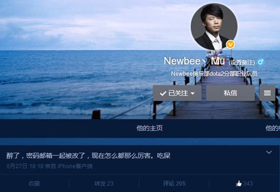 而近日,DOTA2著名选手NB战队的MU神发表微博,表示帐号被盗。