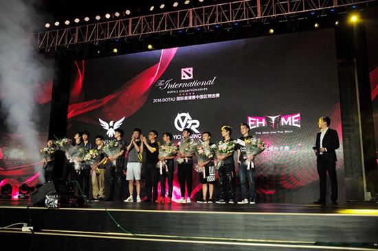 在历经为期四天紧张激烈的比赛之后,由完美世界承办的2016年国际邀请赛中国区预选赛已于6月29日落下帷幕,淘汰赛冠军VG.R战队和积分循环赛第一名WINGS战队携手进入2016国际邀请赛正赛,淘汰赛亚军Ehome战队进入外卡赛。他们将与直接受邀的LGD战队和Newbee战队一同前往西雅图钥匙球馆。完美世界副总裁顾黎明先生也亲自上台为选手颁奖并且为即将出征西雅图的中国军团加油助威。