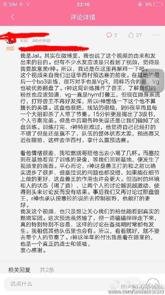 随后,VG的经理发表微博,表示大家曲解了自己的本意,也许自己不应该发这部视频,并向老队长道歉,顺便放出自己在某论坛发的一个帖子