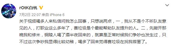 文中说道,老队长这把的兽王很肥,训练的对手居然是VG.R,同TI6预选赛一样也是很大优势被翻盘,训练完后老队长去喝了点酒,这可能就是老队长过于激动的原因吧