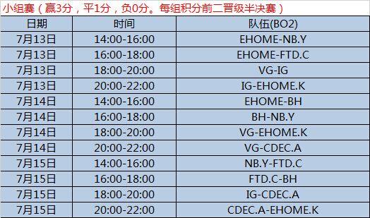 参赛队伍: VG、IG、EHOME、Newbee.Y、 EHome.K 、CDEC.A 、FTD.C 、BH,共8支战队参加比赛。