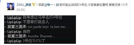 今天凌晨,ZSMJ在一条微博中透漏:可能会试试换位置,去打4号位。