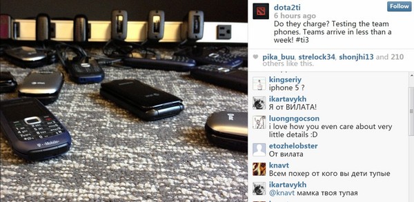 我想说TI2的时候,V社对于比赛队伍的照顾已经是我10多年来看游戏竞技比赛里面最完善的,最体贴的!结果V社永远不懂得满足,TI3,V社将为每个参赛队伍配备团队手机。方便队伍在西雅图的时候可以随时交流!看到这里我只想说:V社,你真是要逆天了!唯一想吐槽的是爱疯5呢