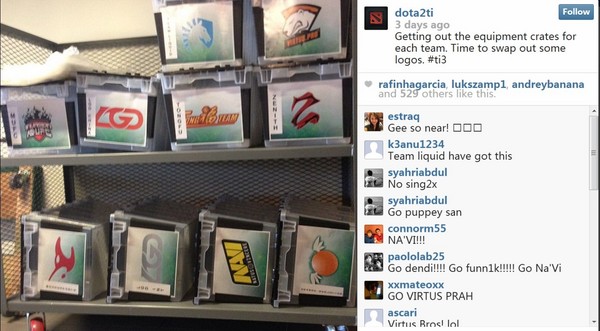 TI3的各队战旗已经准备好,好想要!看上去就热血沸腾有没有!各个队伍的脑残粉在哪?(这张照片也可以的,正好是 LGD DK IG TF和NAVI 预测TI3前5吗?不按顺序)HOHO