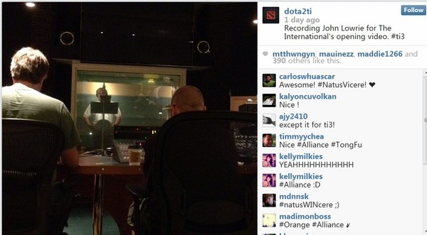 John Lowrie正在录制TI3开幕视频。HOHO!你问John Lowrie是谁?他就是DOTA2里面配音牛头,影魔,屠夫,蓝猫,AA,DS和DOOM的男人,够有才吧。 HOHO