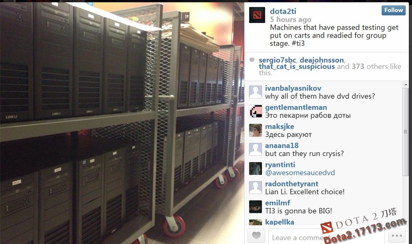 今天VALVE再度放出一组官方图片,向全球观众展示了为TI3选手们准备的比赛电脑。HOHO
