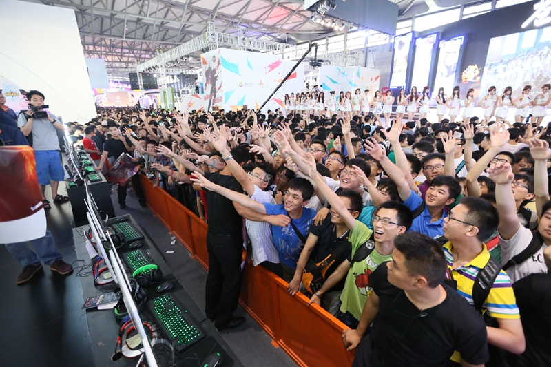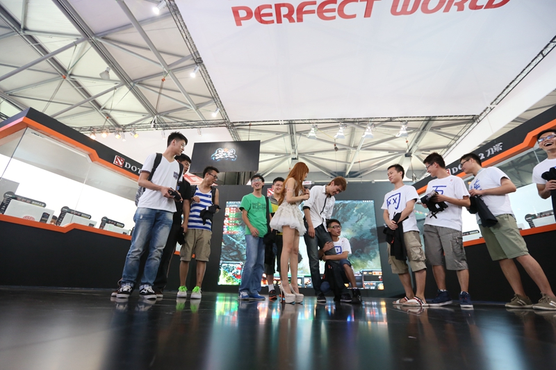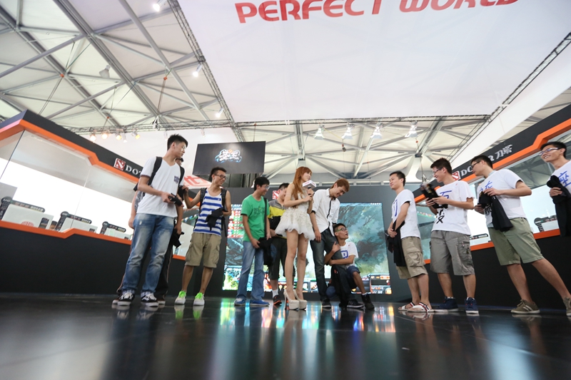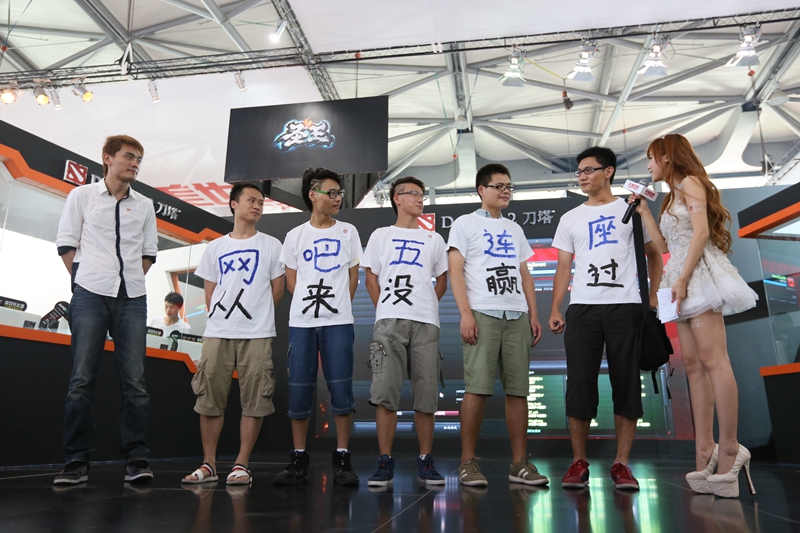 在26日上午由电竞明星曹安娜和鼠大王主持的DOTA2展台上,传说中的“网吧五连座,从来没赢过”组合居然真实现身。该组合的五位玩家不仅与另外一支水友队进行了激烈的对抗比赛,更有一位鼠大王的铁杆粉丝激动到跪抱鼠大王的大腿,令周围的广大玩家发出阵阵尖叫