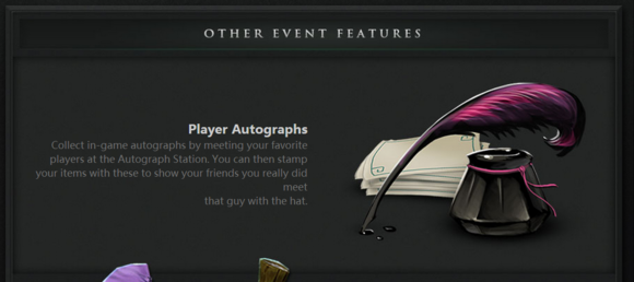 这是更新帖里面提到的,职业选手签名道具,只要你在TI3要到了职业选手的签名,就可以获得一个背包道具,可以将职业选手的签名盖章到饰品上面,是不是够显摆(这福利太逆天了)。