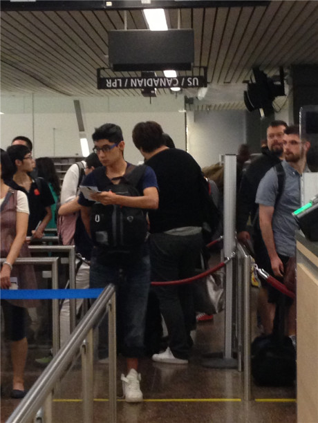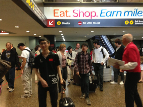 首先,在东京转机的时候巧遇三冰哥,他们是跟我同一个航班飞往西雅图的。在飞机上的洗手间门口又一次遇到三冰哥,我激动的狠狠的盯着三冰哥看了几秒,“吓得”三冰哥缩进了洗手间。然后在安全着陆过海关时,发现了几个也在排队的战队。