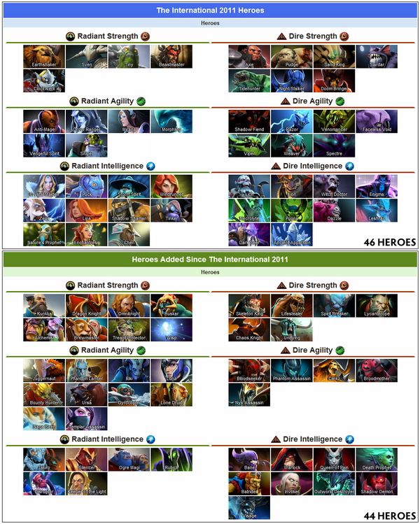 去年至今DOTA2西雅图邀请赛的英雄示例图
