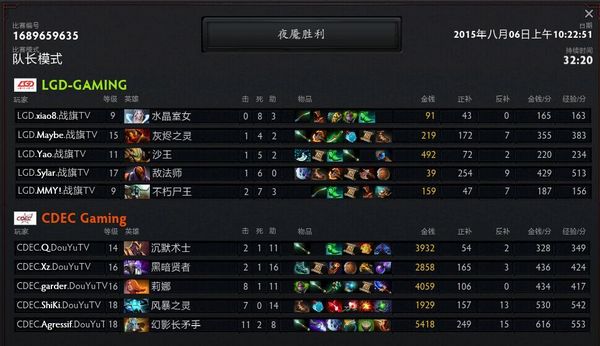 北京时间8月6日国际邀请赛的倒数第三天进入的白热化阶段,就在11点10分,CDEC在胜者组的比赛中以2:0的比分漂亮的击败了老大哥LGD战队。