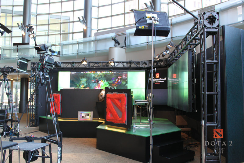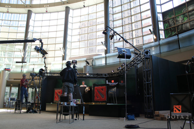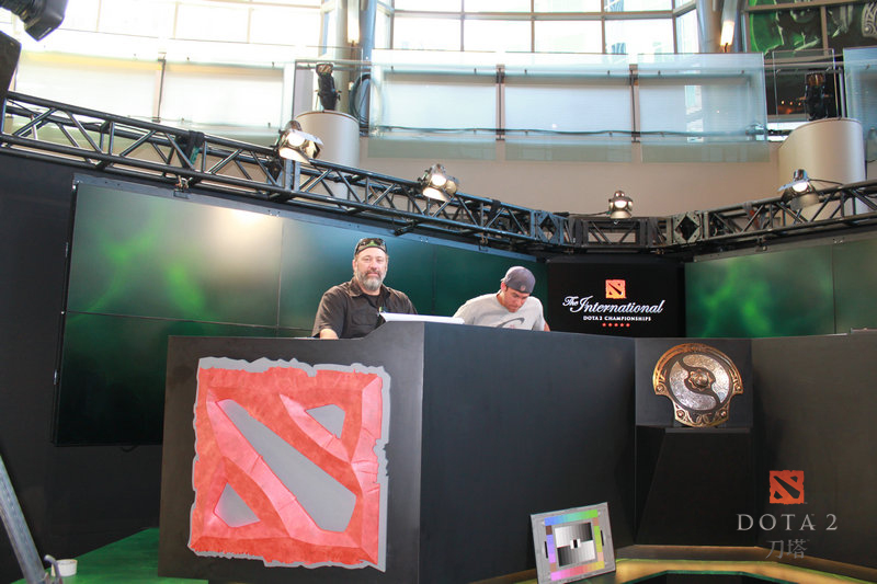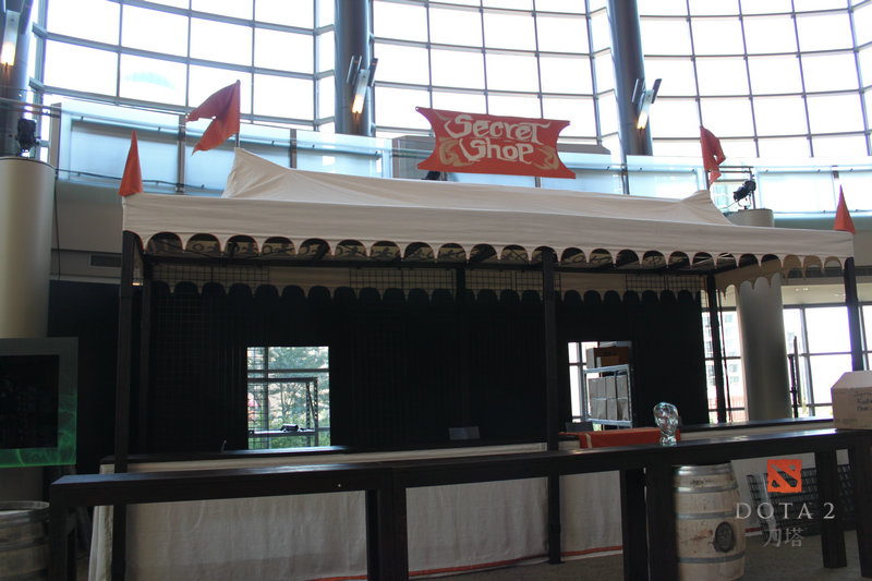 同时,作为DOTA2的比赛,现场自然也少不了游戏中的相关元素和主题。场馆内现在已经搭建起了许多游戏主题元素,如神秘商店,据说届时这里会出售各种周边。还有一个大大的朗姆酒桶,不知道多少人才能喝完其中的酒。随处可见的DOTA2元素,绝对让人感觉身临其境,仿佛真的穿越到了一个远古遗迹的世界。而更多的设施布置还在继续中,相信当比赛真正开始时,一定会更加让人震撼!