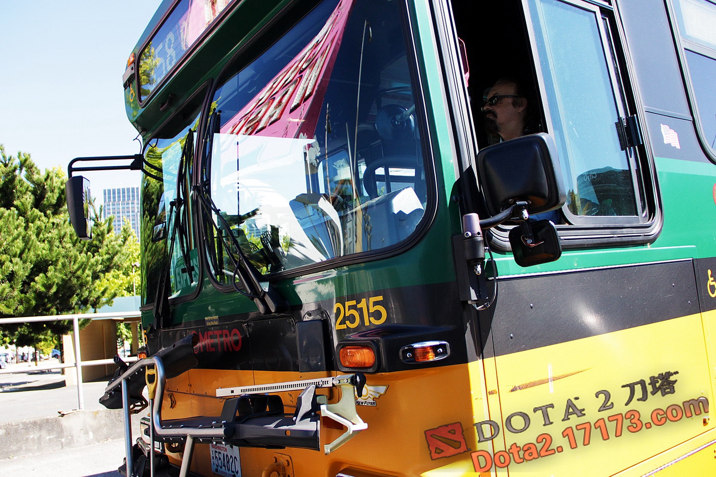 看到一个胡子大叔开着巴士,前面的挡板挺帅的