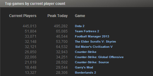 7月15日,据Steam平台数据显示,《DOTA2》公测一周后同时在线人数达到34.7万。此次数据主要是因为公测的影响力,公测当天《DOTA2》同时在线仅有30万。而2012年3月《DOTA2》刚开始测试时同时在线仅有3万人,到今年3月时人数已经提升至20万。