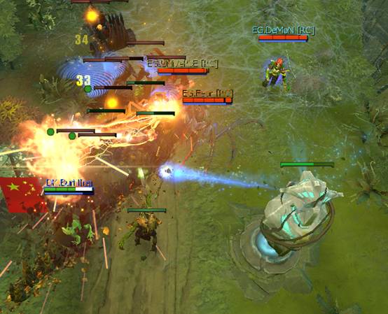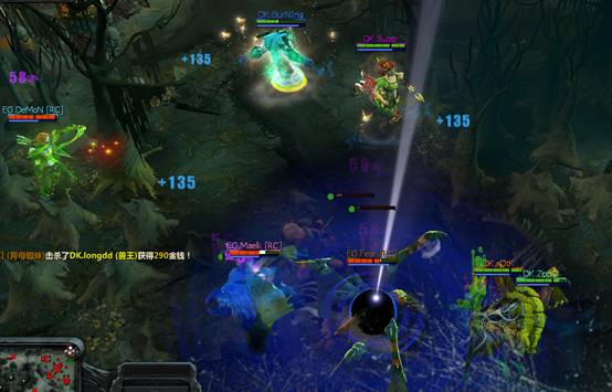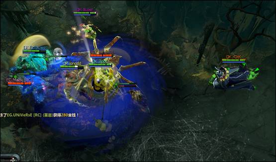 2.EG的队友呼应。整场比赛EG队员之间的协作,呼应,互相拉扯,对胜利有极大的推动作用。