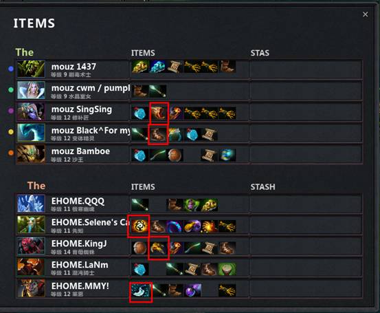 装备上EHOME各种关键道具在手,Mouz惨不忍睹。Lion的跳刀更是扩大优势的利器。
