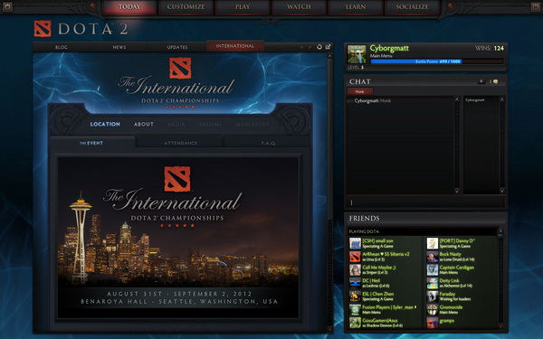 DOTA2更新后的读取界面采用了2012年西雅图国际邀请赛(The International 2012)的主题。