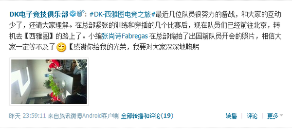 今日,各大国内战队队员微博向大家宣布,中国战队已经踏上西雅图的征程!目前他们应该在飞往西雅图的路上,粉丝们,为他们加油,为他们祝福吧!
