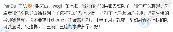 PanDa俱乐部投资人于航就在微博上对于国士无双的行为表示了不满: