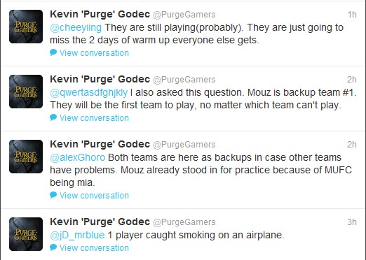 MUFC的某个队员被抓到在飞机上吸烟。Mouz顶替而不是WE战队顶替的原因是Mouz是第一替补,而WE是第二替补。鉴于MUFC队员现在仍处于失踪状态,Mouz战队顶替参加训练。