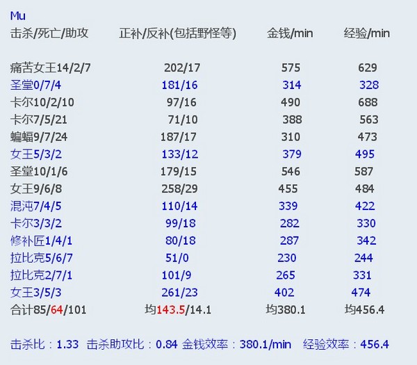 悲情,这是我对Mu的第一印象。Mu如果崩了,那TF也就离崩盘不远了。一个人扛起一个队B神最有感受了。Mu和B神不同的是:B神是主C,只要自己不崩就还有的打;而Mu经常好不容易打出的优势被hao一波送回去。Mu常年一张苦瓜脸也是可以理解的,因为你永远不知道hao下一刻会给你什么样的惊喜,天堂还是地狱?Mu还是所有中国队伍里唯一一个经济不如主C,但经验超过的SOLO,这一定程度上说明Mu的重心都是带节奏上,而且也做到了(杀人经验高,但没怎么刷钱)。TF有时候让Mu去打辅助挺雷人的,没有Mu带节奏你们就是另一个皇族。另外,最近SG热衷于拿430和Mu对比,我觉得他们有个很大的区别:430极少崩盘而Mu有时候还是会的。