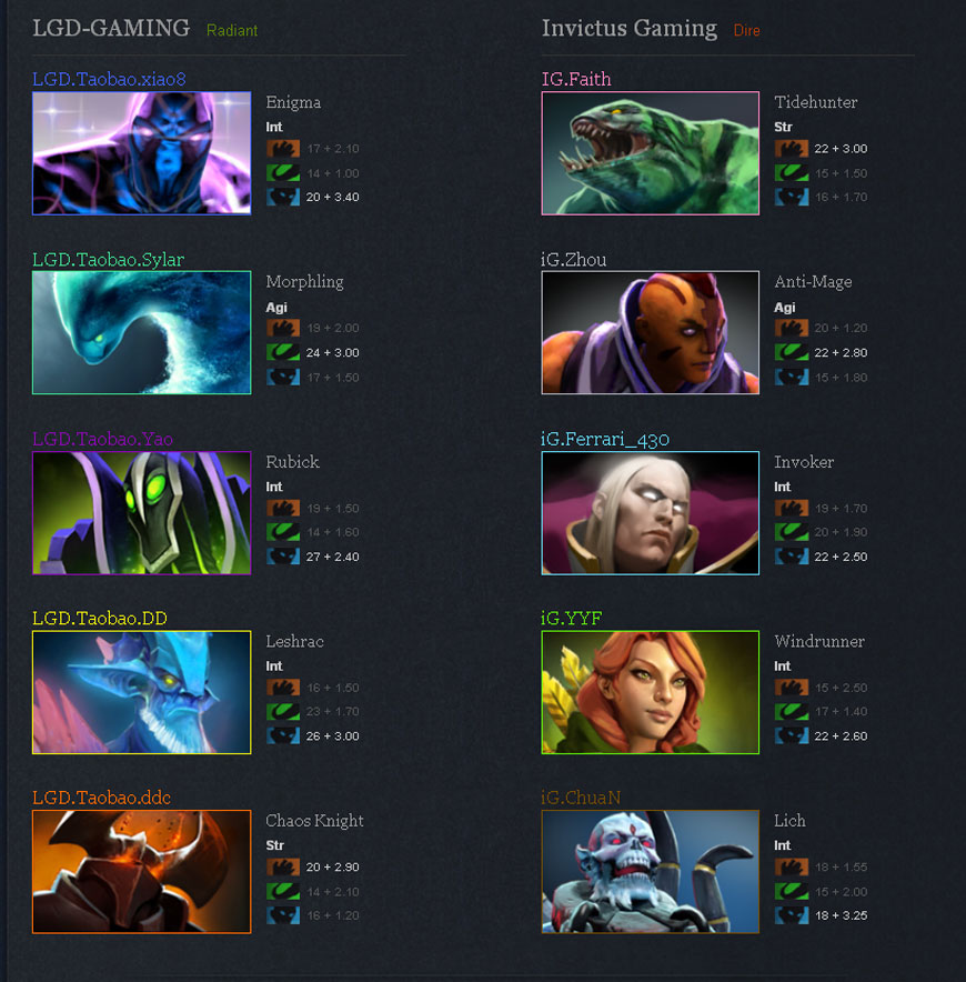 第三场的英雄阵容:左边LGD,右边iG
