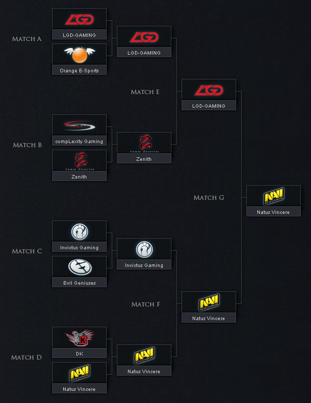 Na'Vi一扫小组赛的萎靡状态,居然在接下来的三天内的淘汰赛中稳步前进,连续以2比1击败中国三强DK、iG和LGD,挺进决赛。