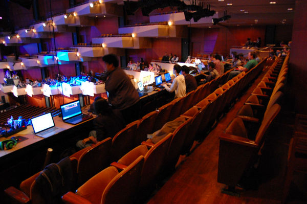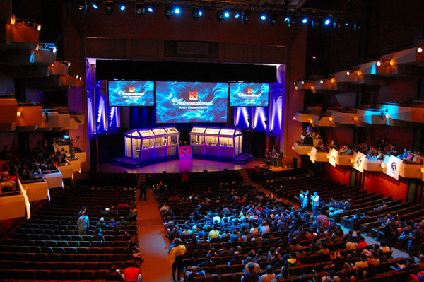 音乐厅的气氛真是够劲爆!尤其是coL第一局以压倒性优势取得胜利的时候,人群中曾一度反复高喊“USA USA USA”。不过还是佩服观众中的粉丝们,他们的赞美总会给在应得的时刻——他们的欢呼声,每当xFreedom的冰晶爆轰精准落地,或者三冰用天火灭掉一个英雄的时候总能达到高潮。这是一次非常棒的体验,尤其这是我第一次现场感受国际邀请赛。如果你爱玩Dota2,这里绝对是你想来的地方。在网上看比赛直播是一回事,而到现场看则完全是另一种独特的体验。我现在要下线了,就不打扰各位继续欣赏从Zenith战队的阳台拍摄到的图片和视频了!等不及第二天的到来!Zenith战队加油!
