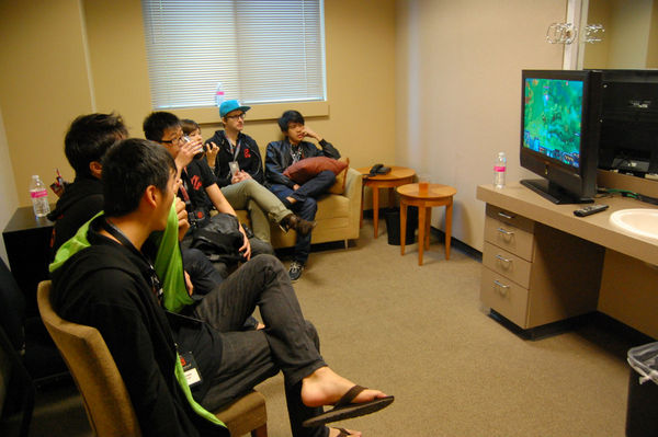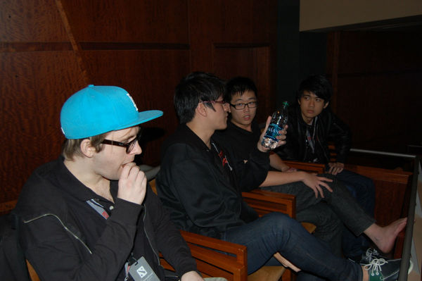 (队员们正在观看Na’Vi和DK一决雌雄)——最后的结果是DK1:2负于Na’Vi