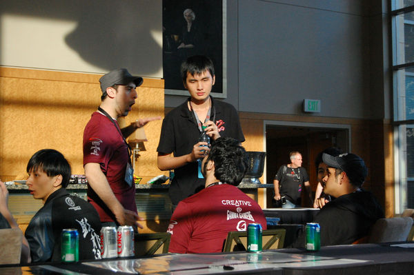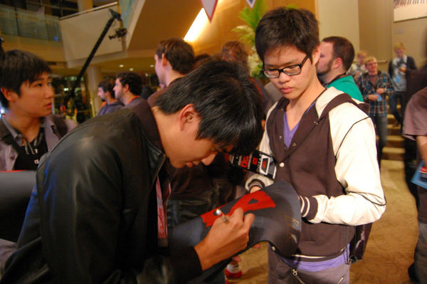 在我们的一天结束之后,我们在走出会场返回Hyatt酒店的路上碰到了很多粉丝和我们的选手打招呼。选手们都痛快地答应了粉丝们的合影和签名要求。以下是其中的一些,如果这里有你的照片一定要告诉我们!呃...还有两个小贴士,第一,HyHy不喜欢签名,不过他很愿意和你合影;第二,不要介意和Zenith战队的队员们索要合影!他们不咬人(They don’t bite,其实是他们很友善的意思)...大多数的时候吧...
