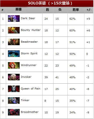 这个统计中包含了中路与边路的solo,这里面也有不少英雄在中路边路都出现过,这次比赛中很多传统的solo英雄反而表现不佳。黑暗贤者证明了自己在团队中的作用,它的胜率也是最高,一个非常靠谱的边路solo。紧随其后的是赏金猎人,这个英雄在比赛中都很有作用,同样也是用来承担边路solo。而之前比较厉害的修补匠反而是表现不好,可能也是跟目前的虚灵刀流水人一击秒杀有关。剩下的一些常被用来solo的英雄则是圣堂刺客、德鲁伊和变体精灵。