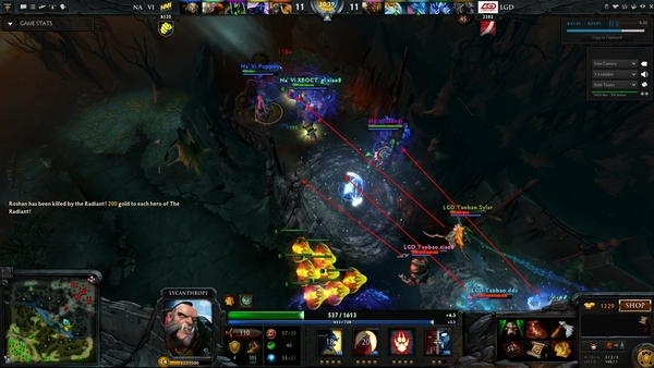 比赛进行到29分半,此时双方人头数已经几乎没有差距。LGD积攒了一段时间后打算打肉山拿盾。然而Na'Vi却有不同的想法,他们及时赶到强行与LGD展开团战,收走了YAO的龙骑。
