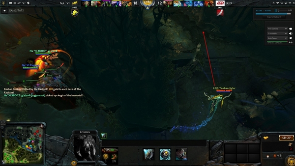 然而这还不是决定性的时刻。在迫使LGD匆忙撤退后,NaVi迅速推掉了肉山并且拿到了...等等,sylar的小娜迦突然过来施放了海妖之歌定住了Na‘Vi的英雄们,然后抢到了不死盾后迅速传送走。